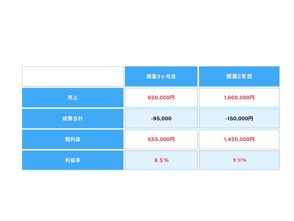 低資金で開業し、早い段階で売上を立て、自信と安心を手に入れるためにマンツーマンでサポートします。